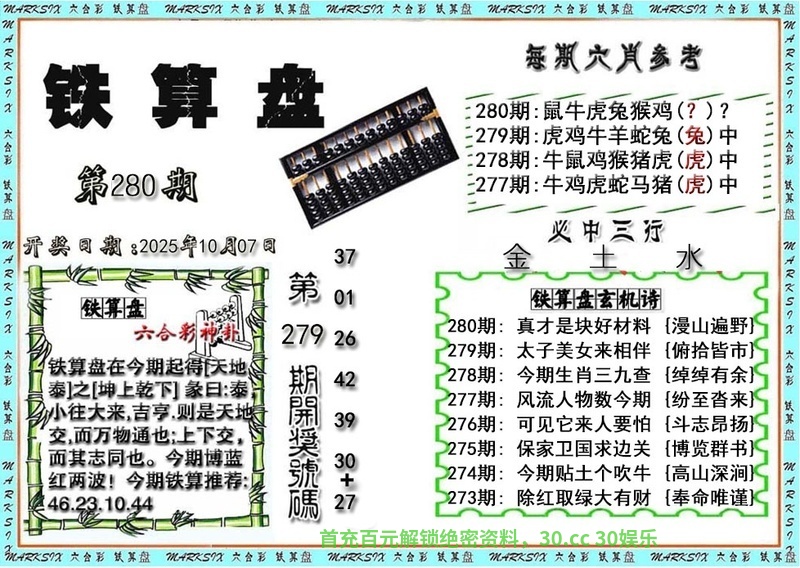 280期:吉凶两肖【凶丑+羊龙】开:鼠42准 |